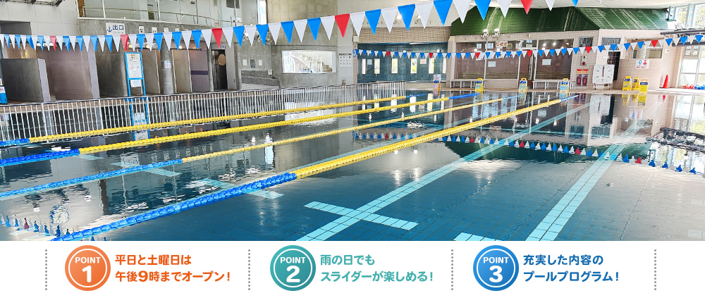北部水泳場では幅広いニーズにお応えできるメニューを取り揃えています!詳細は受付までお問い合わせ下さい。